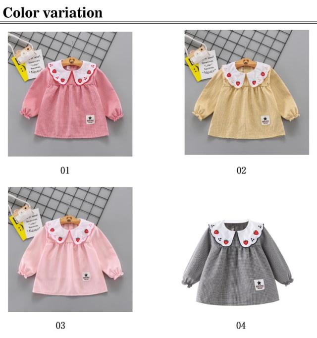 | 90-120cm!洗濯しやすい・汚れに強い防水加工のキッズスモック。 お洋服のような可愛いデザインの長袖スモック、女の子が大好きに間違いなし。 可愛いスカラップ襟に繊細な刺繍が施され、まるでおしゃれなブラウス。 外出時恥ずかしくないおしゃれにスモックを着用できます。 長袖タイプなので、お洋服はいつでも清潔にいられる。 胸部分は防水加工で、お食事など時もお洋服を汚せず安心。 すっぽり被るだけで可愛く汚れ防止◎ お家はもちろん、幼稚園や保育園でも大活躍に間違いなしです。 | |