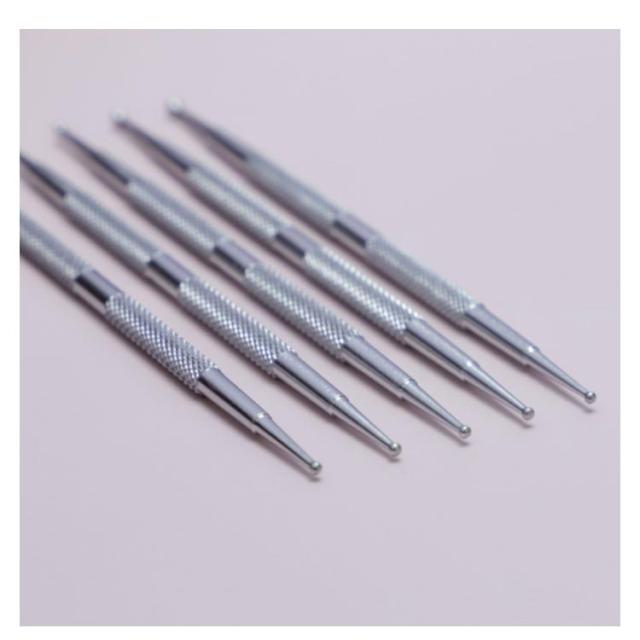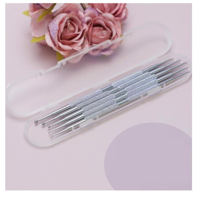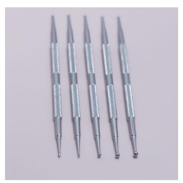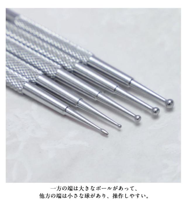 | ネイルドットペン5本セットセット! ケース付き! 一方の端は大きなボールがあって、他方の端は小さな球があり、操作しやすい。 ドットペンは異なるサイズのボールがあるので、 ネイルアートに関する仕事をする時、 様々なサイズの装飾品を爪に置くことができます。 | |