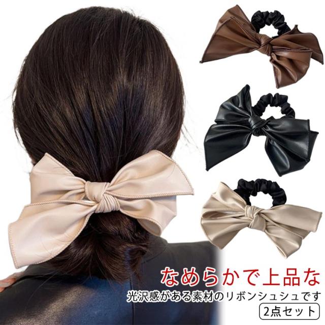シュシュ 2点セット 2点セット 秋 シュシュ 簡単 ヘアアクセ PU ヘアアクセサリー 冬 まとめ髪 ポニーテール 髪留め リボン ヘアゴム ヘアアレンジ 痛くない 髪飾り 大きめ 韓国
