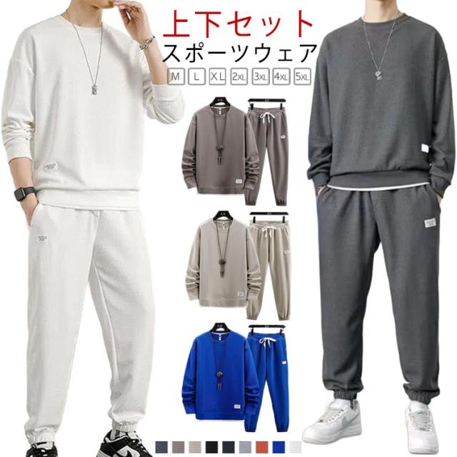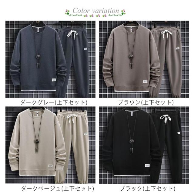 ジム スウェット 長袖 シンプル ジャージ セットアップ メンズ スポーツウェア メンズ 長ズボン 無地 カジュアル 無地 2点セット ジャージ上下 上下セット 運動 ルームウェア 重ね着風 運動着 部屋着