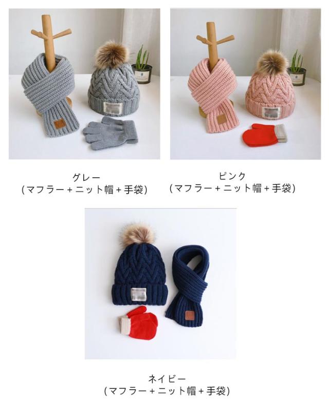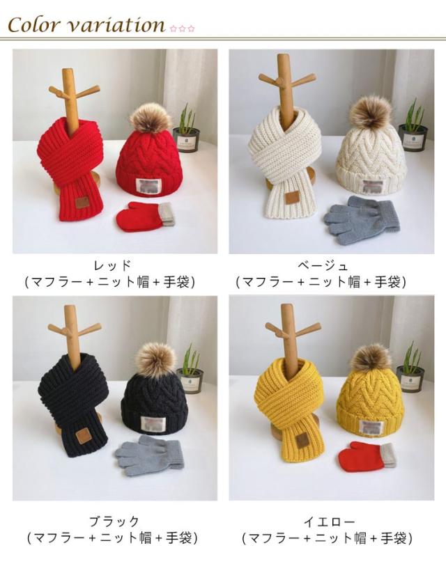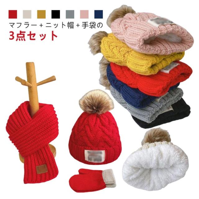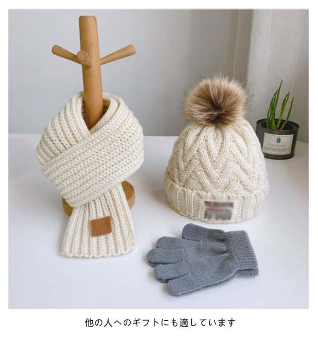 男女兼用 3点セット(マフラー+ニット帽+手袋)かわいい 子供 防寒 男の子 ネックウォーマー 帽子裏起毛 ポンポン スヌード ニット 3点セット(マフラー+ニット帽+手袋)かわいい 冬 女の子 保温 雪遊び おしゃれ かわいい フリーサイズ 小学生 あったか 子ども こども