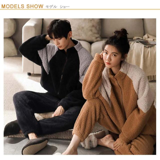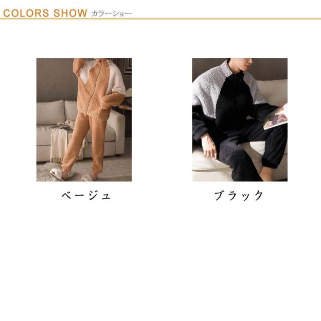 | 街着にもルームウェアにも対応できるお洒落なボアフリースルームウェア。 まるで毛布に包まれているような着心地、ふわもこの優しい手触り、上下セットだから全身をふんわり包みます。肌寒い季節に欠かせない優秀アイテムです。 スポーティーな配色設計、デザイン性・暖かさを兼ね備えた人気のパジャマセットアップ。 ゆとりのあるサイズ感、リラックスして着用できます。 ファスナーを上まで締めるとハイネックになり、首元もあったか。 前開きで着脱簡単、入院など時もオススメ。 セットアップでルームウェアやパジャマとしても良し、ちょっとしたお出掛け着としても使用できるプレミアムな一着です。 | |