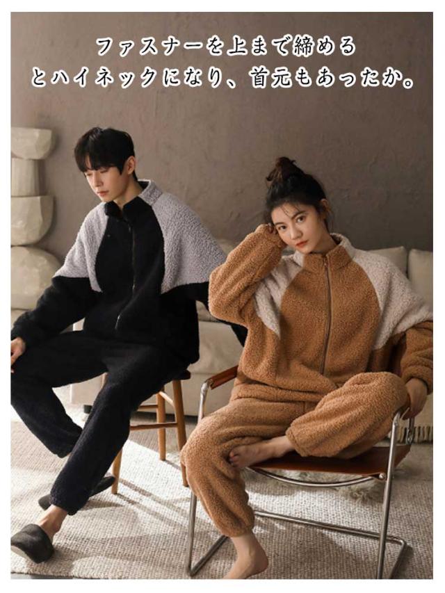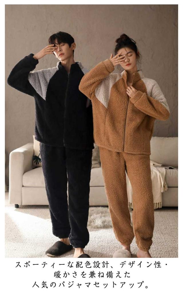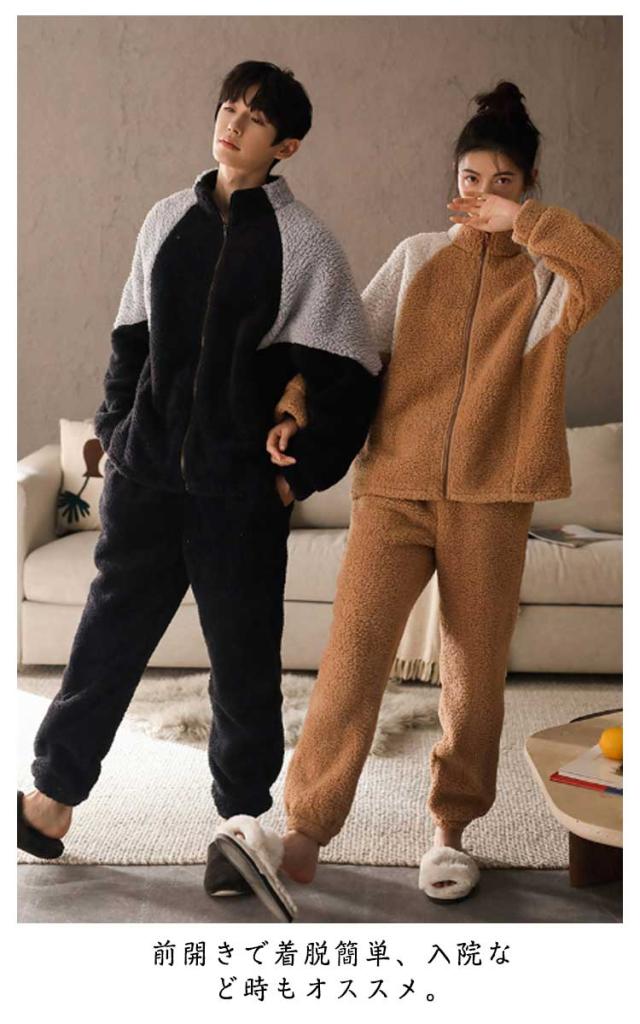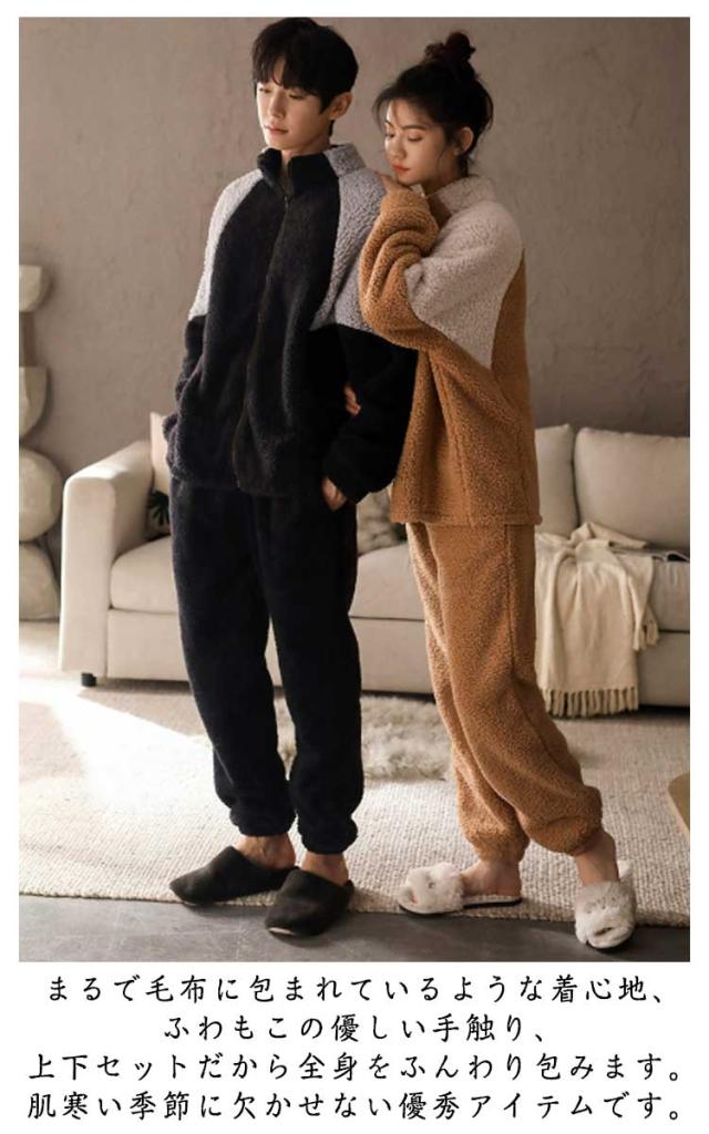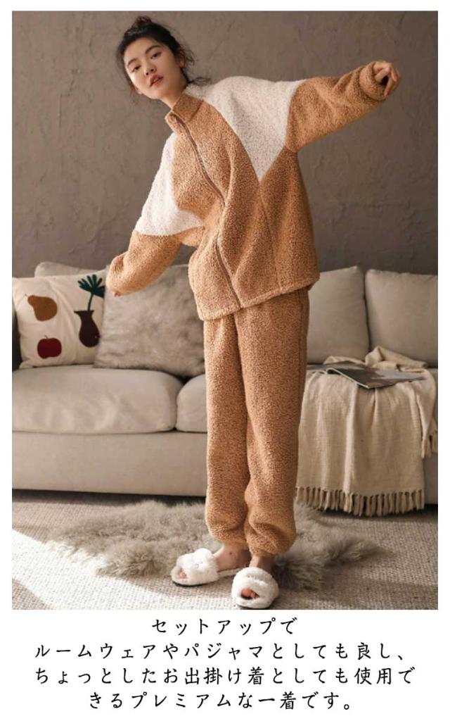 パジャマ 2点セット ボア セットアップ レディース ボア ボアパーカー 上下セット メンズ 着る毛布 バイカラー スポーティ 部屋着 防寒 フリース ルームウェア 厚手 ふわふわ もこもこ 暖かい 秋冬服 前開き 入院 介護