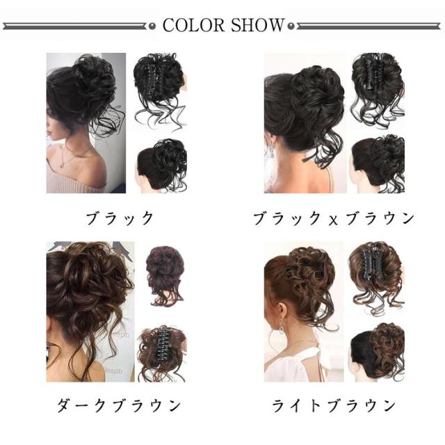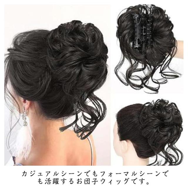 | ルーズ感のあるおくれ毛が絶妙なお団子ウィッグ! ヘアクリップタイプで、アクセ感覚で簡単にお使い頂けます。 カジュアルシーンでもフォーマルシーンでも活躍するお団子ウィッグです。 | |