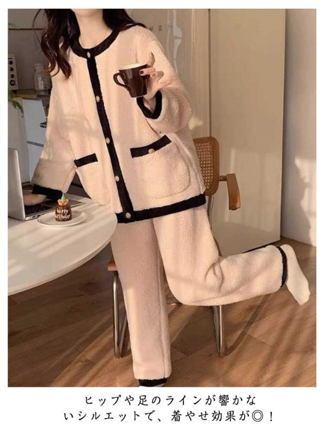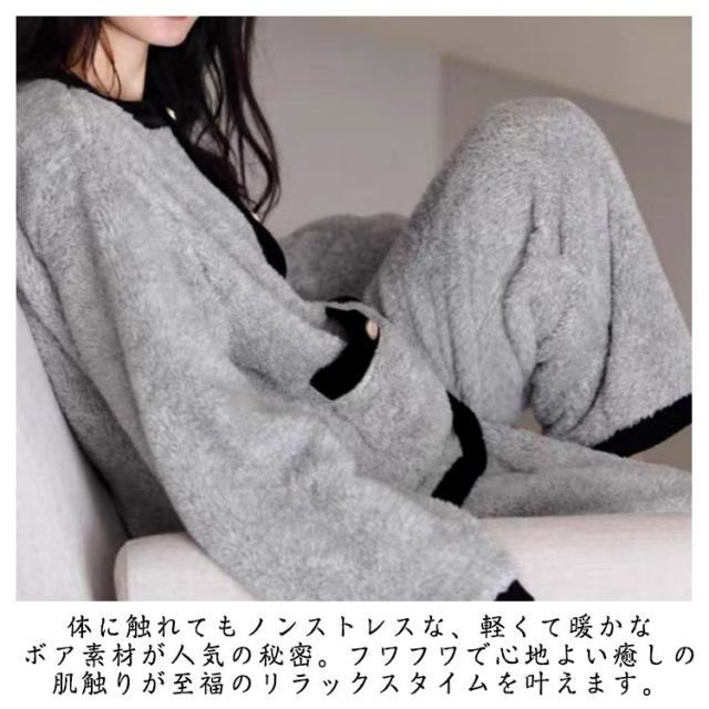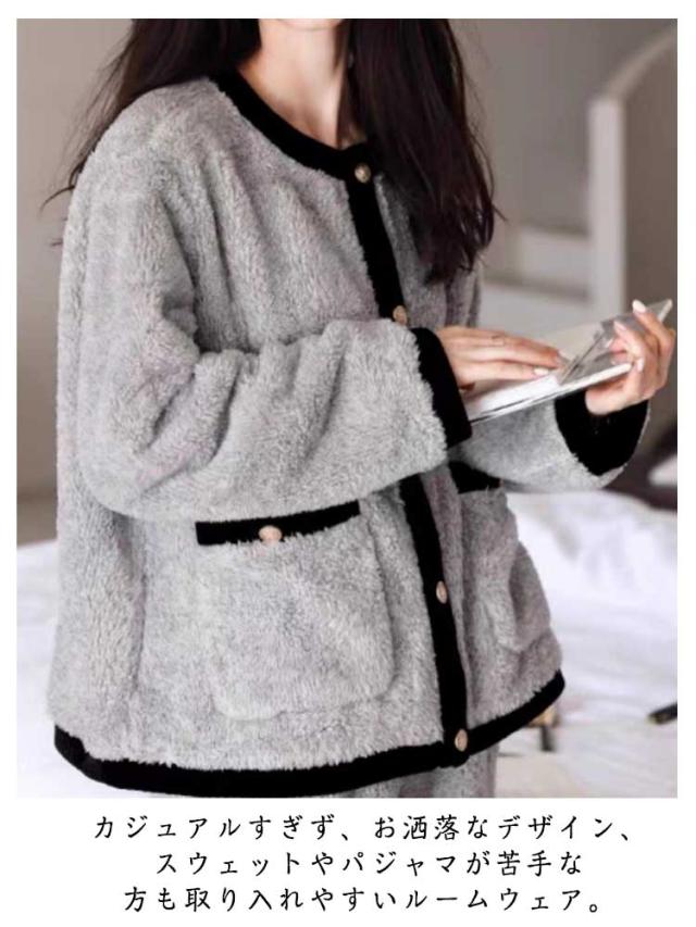 モコモコ 長袖 前開き 部屋着 ボアルームウェア パジャマ 暖かい 外出 ボリューム カーディガン 冬 パジャマ 着る毛布 ボアルームウェア ポケット ボアフリース レディース セットアップ ふんわり 入院 ボア 暖ルームウェア 寝巻き 2点セット