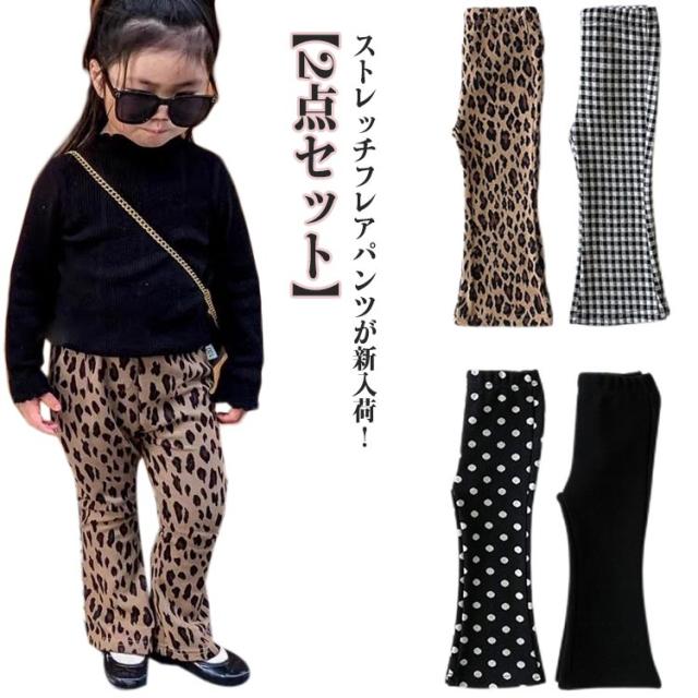 子供 キッズ ベビー 柄パンツ ヒョウ柄 おしゃれ ロングパンツ 保育園 キッズパンツ キッズ服 ズボン 【2点セット】女の子 小学生 チェック レギンス ドット柄 子供服 フレアパンツ 80 90 100 110 120 130 140