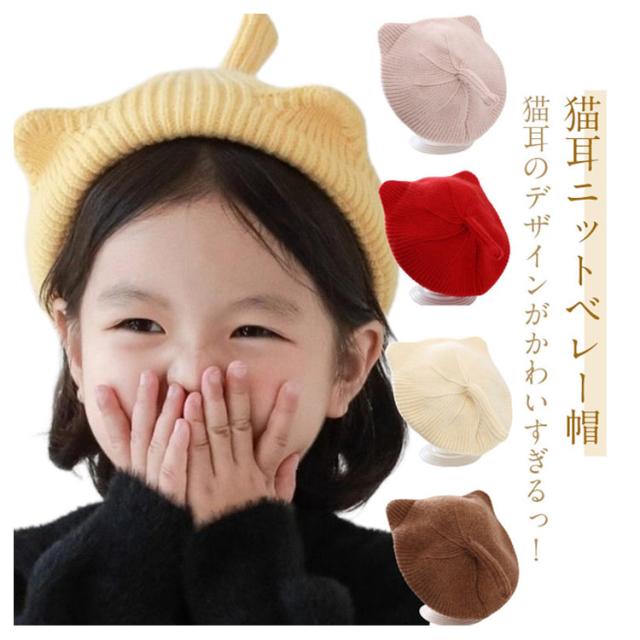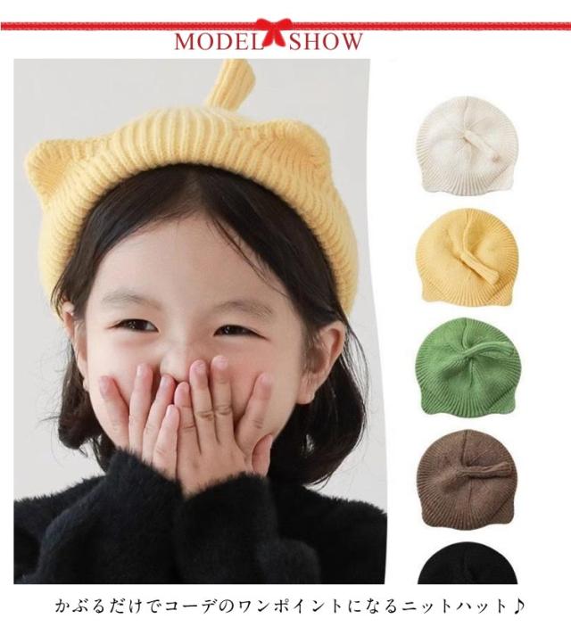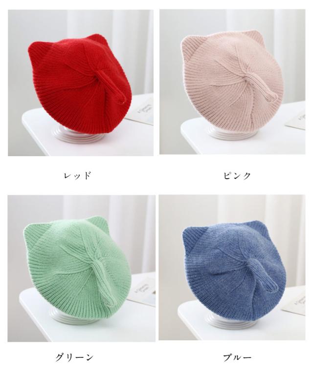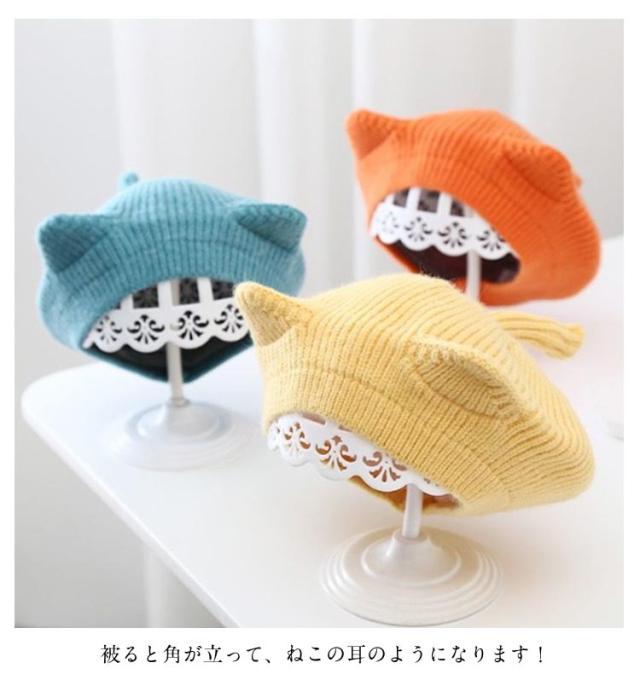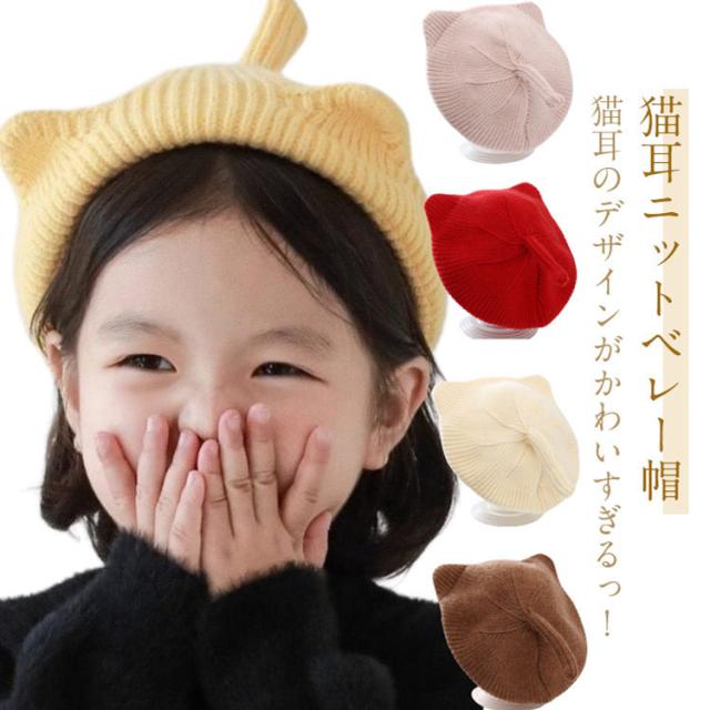 ベレー帽 耳付き 猫 ネコミミ ニットキャップ ネコ 耳付き ねこ 子供 ニット帽 可愛い キッズ こども 子ども キッズ ねこ お揃い 男の子 猫耳 帽子 家族 おしゃれ カジュアル 定番 ジュニア 防寒 かわいい
