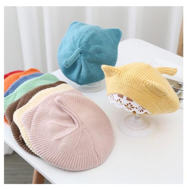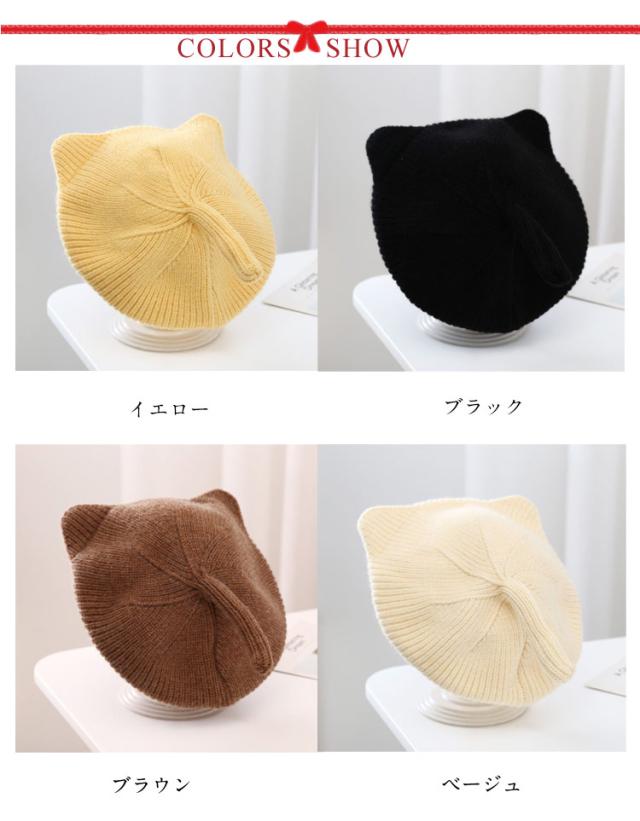 | 猫耳ニットベレー帽 猫耳のデザインがかわいすぎるっ!かぶるだけでコーデのワンポイントになるニットハット♪ 優しい手触りで、肌に触れてもチクチクを感じにくい素材です。 被ると角が立って、ねこの耳のようになります! | |