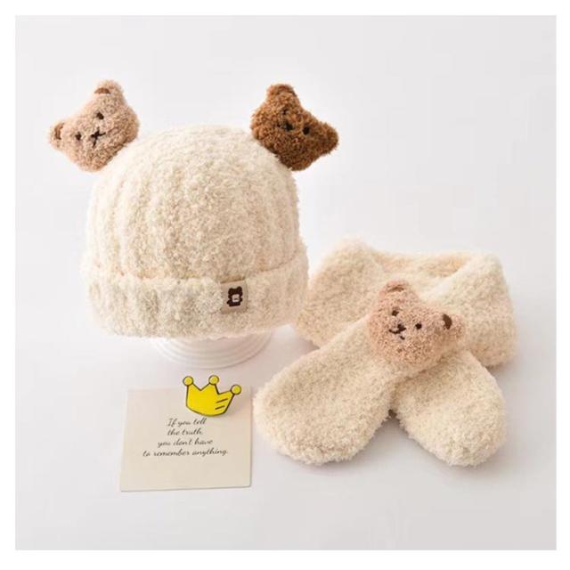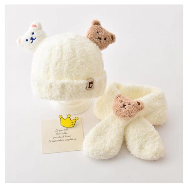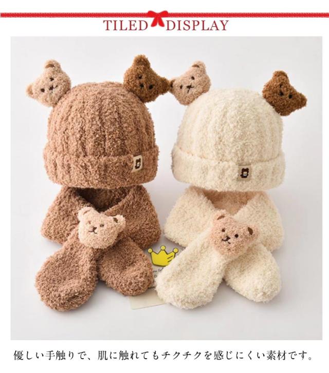 | マフラー&キャップセット かわいいくまさんのマスコットが付いており、お子様の可愛らしさを一層引き立てます。 男の子にも女の子にも似合うデザインで、0歳から3歳までの赤ちゃんに最適です。 優しい手触りで、肌に触れてもチクチクを感じにくい素材です。 保温性にも優れているので、防寒対策としても大活躍してくれます! | |
