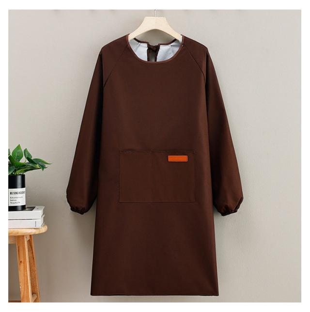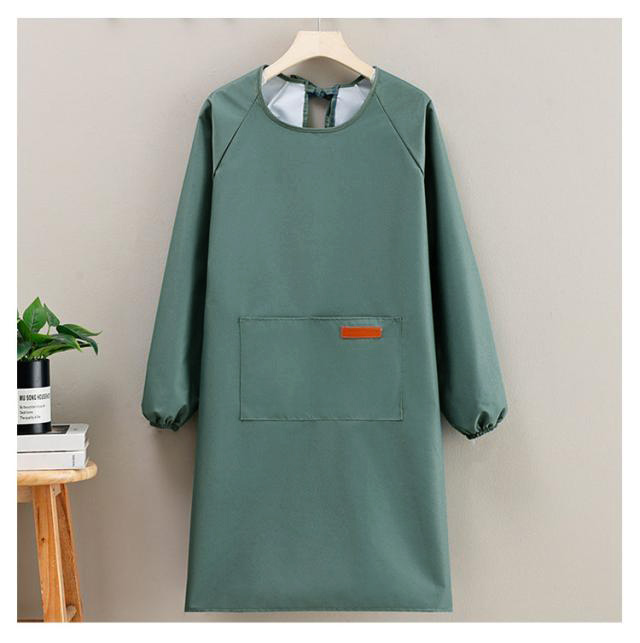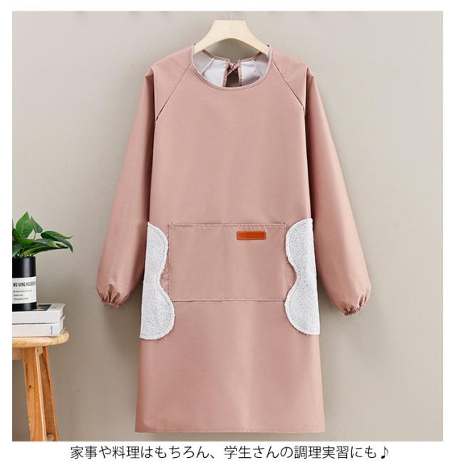 手拭きタオルなし ポケット付き 選べる2種類 手拭きタオル付き 長袖 エプロン スモック 撥水 かっぽうぎ ワークエプロン 袖口ゴム 防汚 業務用 選べる2種類 保育士 飲食店 かっぽう着 カフェエプロン 撥水加工 袖リブ