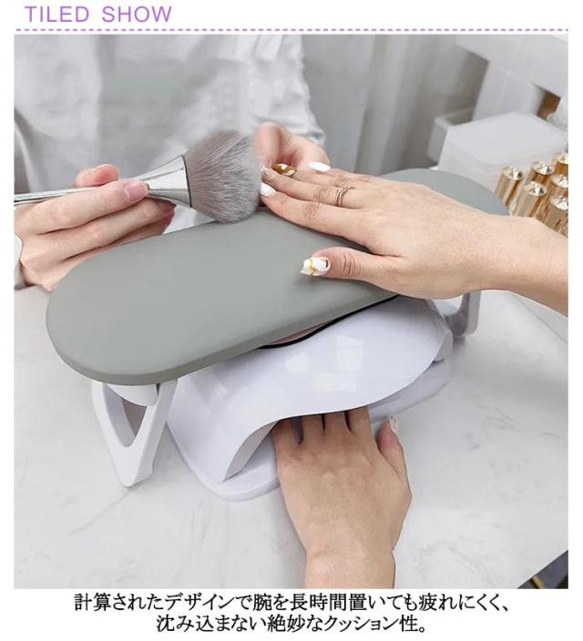 | お客様が施術中疲れない設計の折りたたみ型アームレスト。 計算されたデザインで腕を長時間置いても疲れにくく、沈み込まない絶妙なクッション性。 ライトが収まる!使いやすさにこだわり作りました。 用途に応じて、脚を折りたたむ事もできるので、幅広く利用できます。 汚れにも強く、サイズ感もちょうどいいためサロンワークで大活躍! ネイル愛好家とネイルテックの両方にとって、ネイルに欠かせないアームレストです。 | |