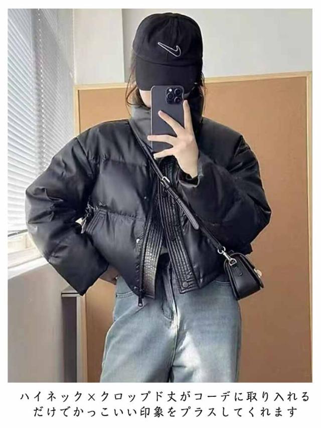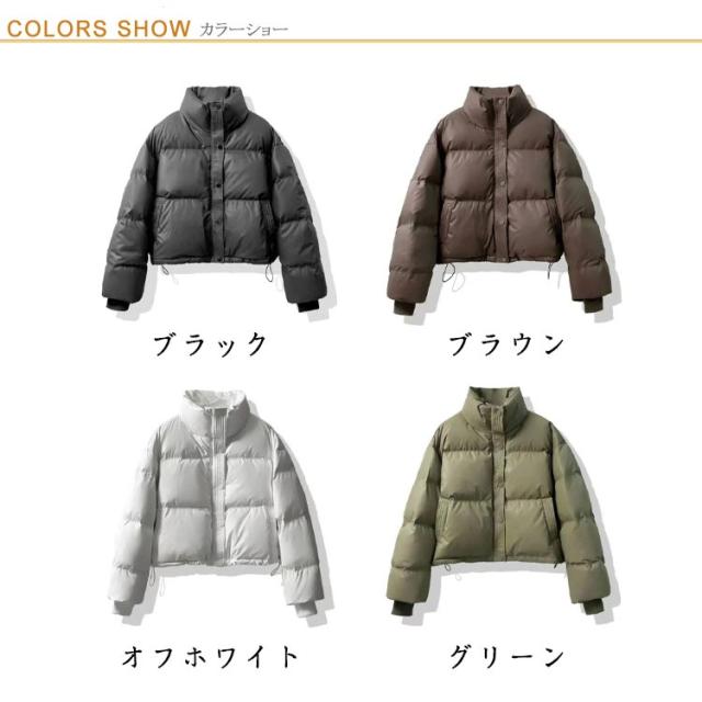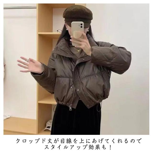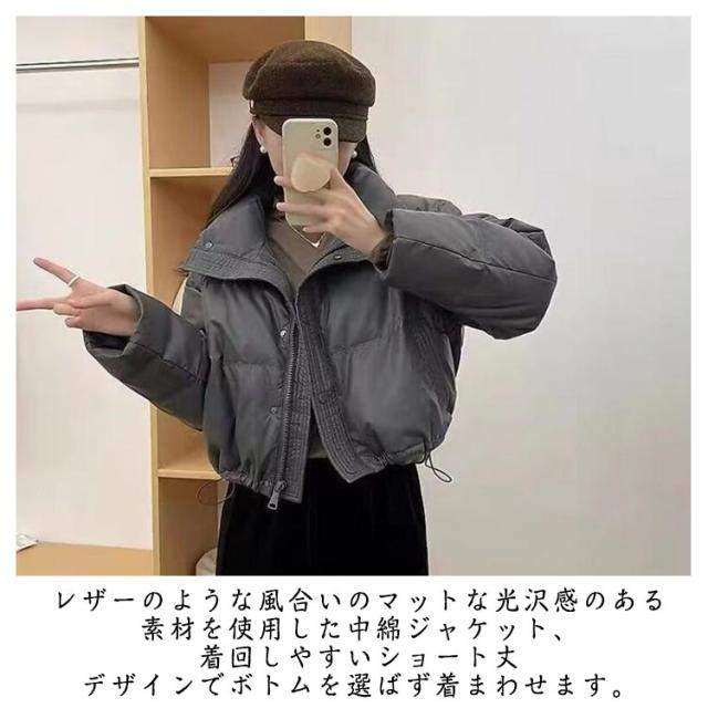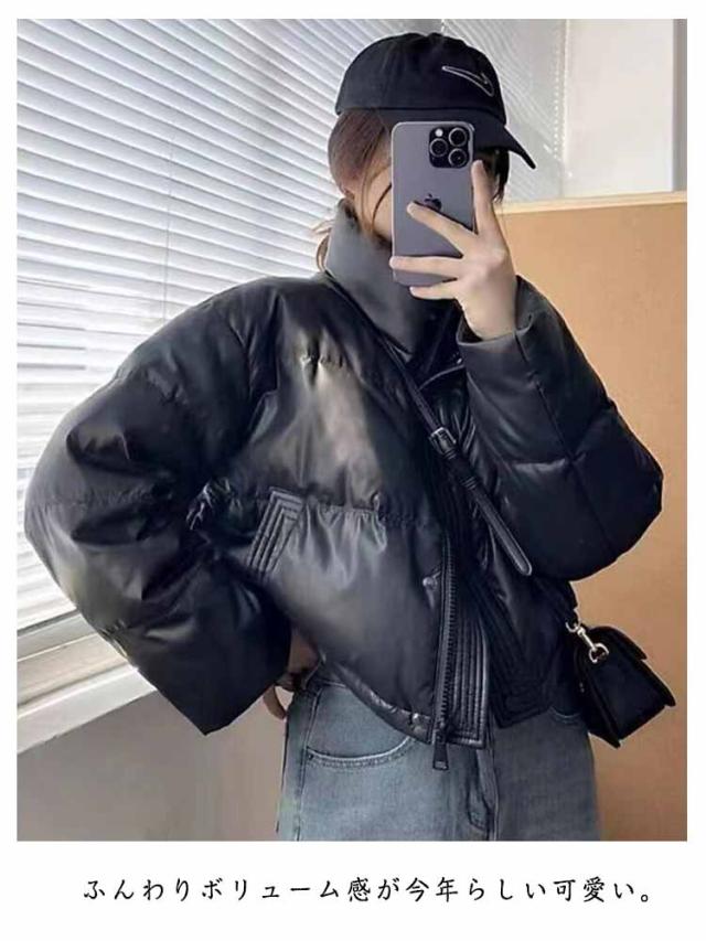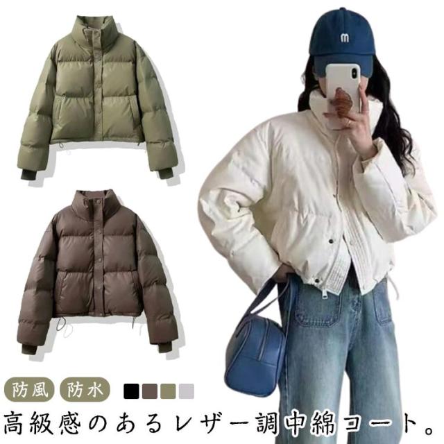 立ち襟 クロップド丈 ショート 中綿コート 中綿 ボリュームネック 中綿コート 撥水 レザー調 コート 中綿ブルゾン 防寒 大人可愛い アウター 上着 レザージャケット レディース 冬服 防風 防水 防汚