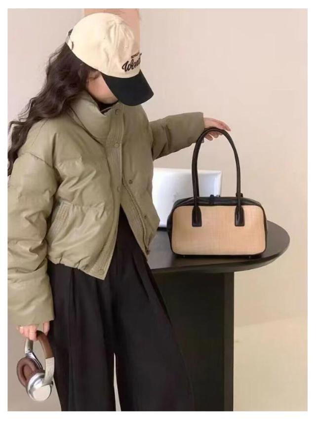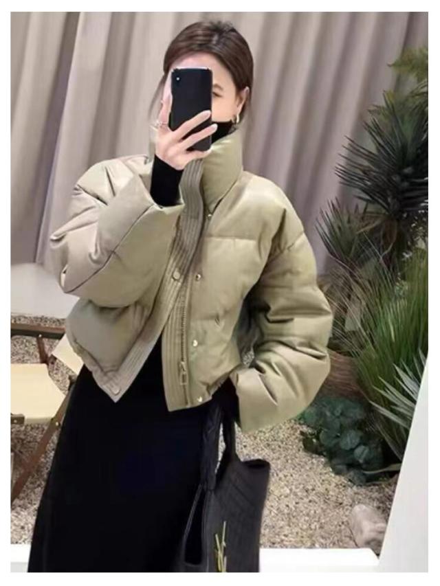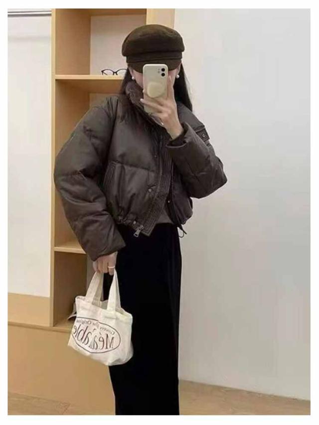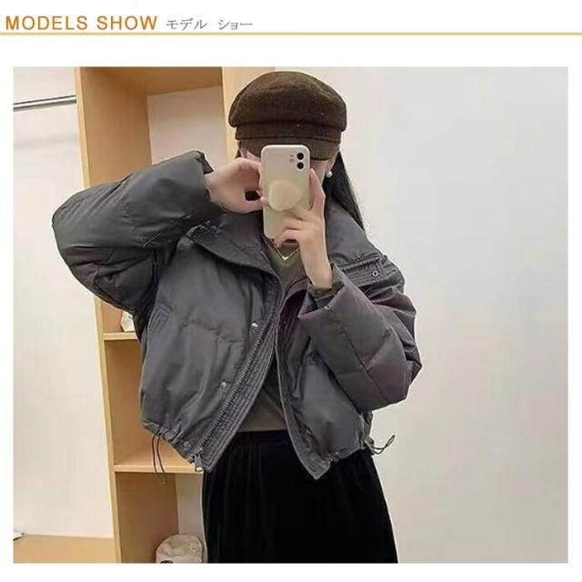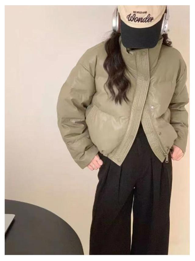 | 高級感のあるレザー調中綿コート。 レザーのような風合いのマットな光沢感のある素材を使用した中綿ジャケット、着回しやすいショート丈デザインでボトムを選ばず着まわせます。 ふんわりボリューム感が今年らしい可愛い。 ハイネック×クロップド丈がコーデに取り入れるだけでかっこいい印象をプラスしてくれます クロップド丈が目線を上にあげてくれるのでスタイルアップ効果も!フレアスカートやボリューム感のあるカーゴパンツなどもバランスよく合わせていただけます? | |