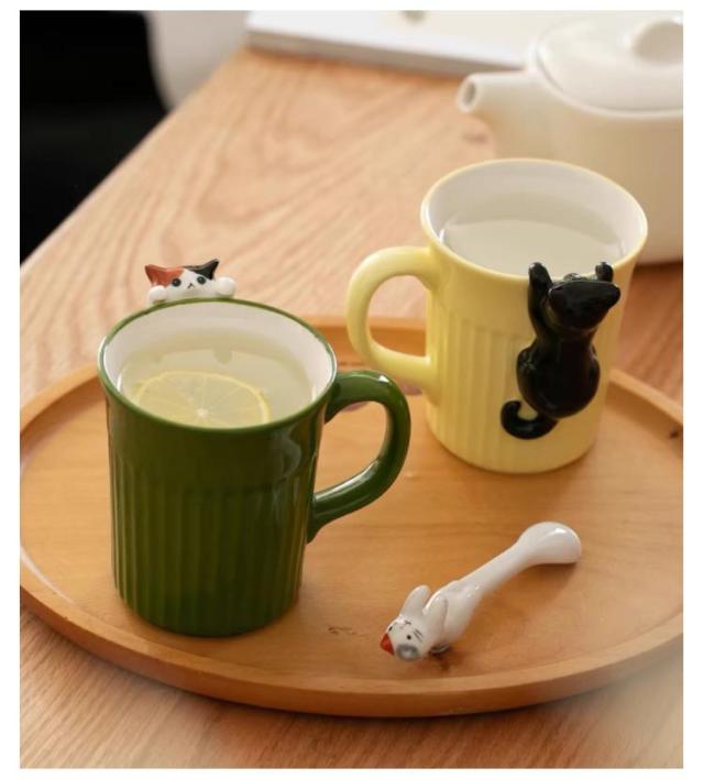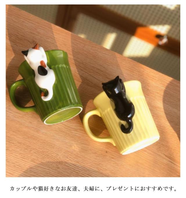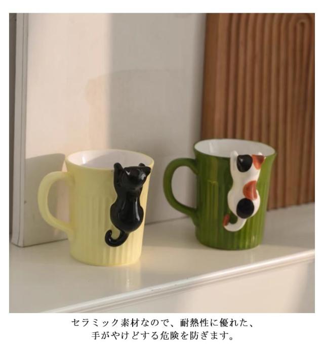 大容量 可愛い 取っ手付き 洗いやすい 牛乳 コーヒーカップ 陶器 マグカップ ジュース 飲み物 お茶 オフィス マグカップ 黒猫 家庭用 引っ越し祝い 誕生日 結婚祝い プレゼント ギフト お洒落