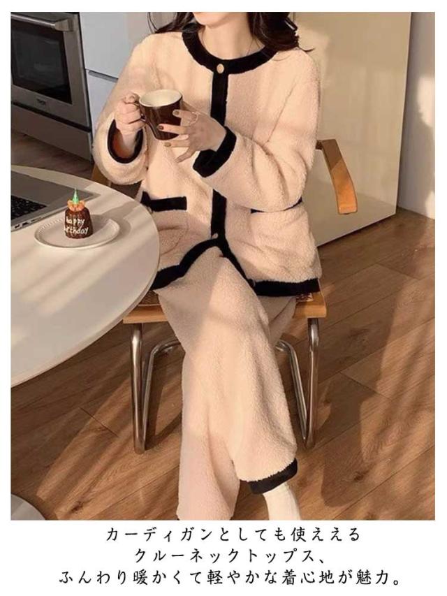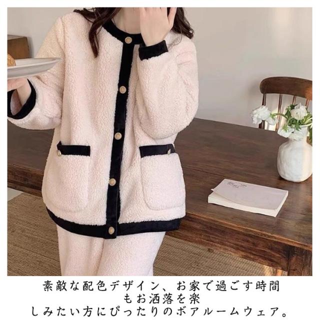 レディース ボアフリース ボアルームウェア 冬 入院 モコモコ 暖かい ボアルームウェア パジャマ カーディガン 外出 長ズボン 着る毛布 パジャマ ポケット 前開き セットアップ ふんわり 部屋着 ボリューム ボア 暖ルームウェア 寝巻き 2点セット