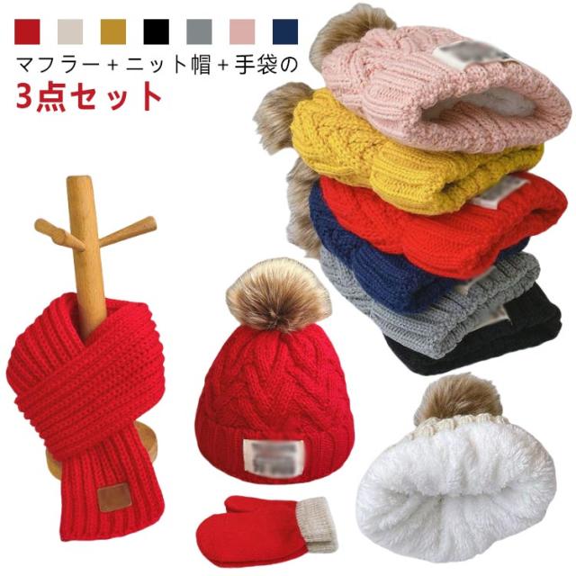 スヌード 女の子 おしゃれ ネックウォーマー 男の子 3点セット(マフラー+ニット帽+手袋)かわいい 子供 3点セット(マフラー+ニット帽+手袋)かわいい 男女兼用 ニット 冬 あったか 防寒 保温 雪遊び 帽子裏起毛 かわいい フリーサイズ 小学生 ギフト 子ども こども