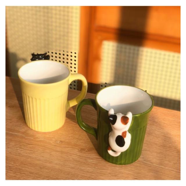 | 三毛猫と黒猫のキュートなマグカップです。 セラミック素材なので、耐熱性に優れた、手がやけどする危険を防ぎます。 机の上に置いても棚に片づけてもとってもなごみます。 朝食のコーヒータイム、アフタヌーンティータイムなどがより楽しくなる一品です。 カップルや猫好きなお友達、夫婦に、プレゼントにおすすめです。 | |
