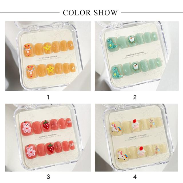 ネイルチップ キャラクター キッズ アニマル ネイルチップ ネイル 立体 小さい爪 貼るだけ ネイル ベリーショート ネイルチップ カラフル ジェルネイルチップ ネイルチップ つけ爪 簡単貼れる 両面テープ付き
