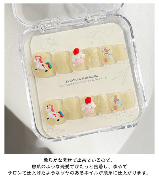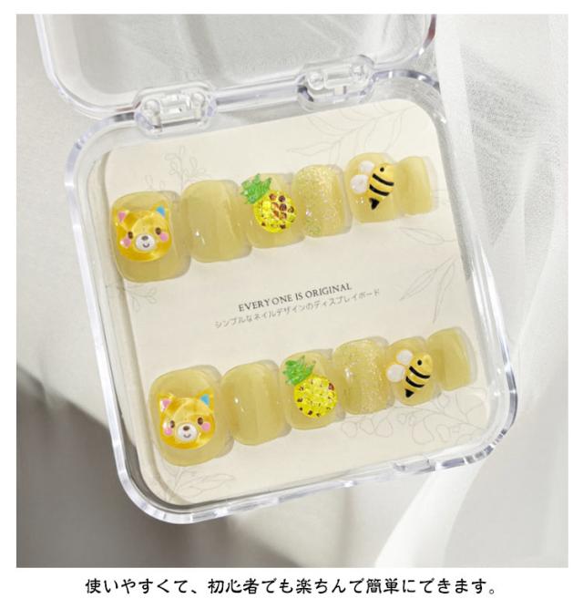 | かわいい気分満載!気軽にコーディネート出来るキッズネイルチップ! 可愛いアニマル柄はプリンセス感、パーティのイベント感を引き立てる。 忙しくてサロンに行けない方にぴったり☆自分の爪にサイズに合わせて貼るだけ! 使いやすくて、初心者でも楽ちんで簡単にできます。 柔らかな素材で出来ているので、自爪のような感覚でぴたっと密着し、まるでサロンで仕上げたようなツヤのあるネイルが簡単に仕上がります。 | |