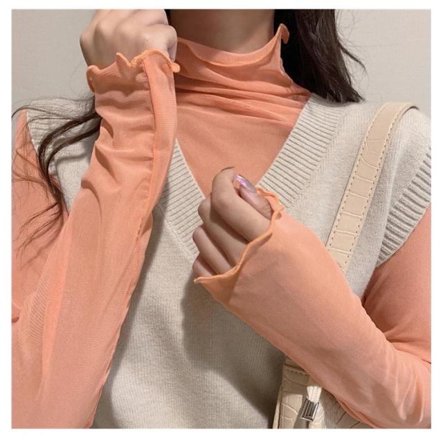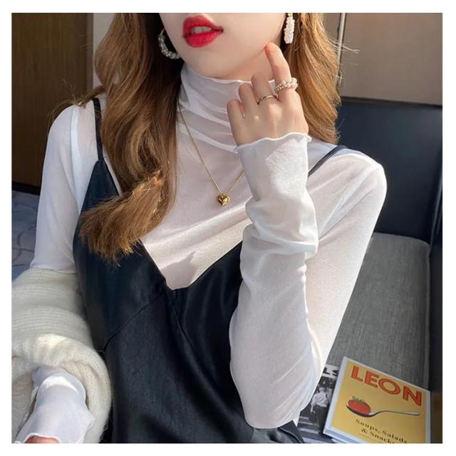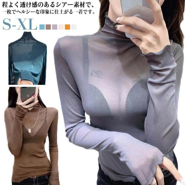 インナー シースルー 長袖 シースルー tシャツ トップス 夏 トップス 長袖 カットソー シアー ハイネック 黒 薄手 重ね着 インナー 夏 ハイネック レディース 透け感 タートルネック レディース トップス 大人かわいい きれいめ シアートップス タートル レース レイヤード