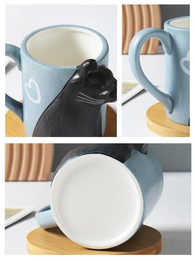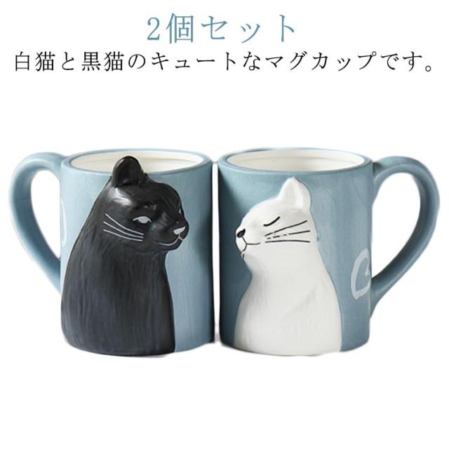 カップル ペアカップ 猫グッズ 黒猫 2個セット 可愛い 白猫 陶器 取っ手付き 大容量 ペア用 夫婦 マグカップ お揃い マグカップ プレゼント コーヒーカップ ギフト 贈り物 クリスマス 家庭用 結婚祝い