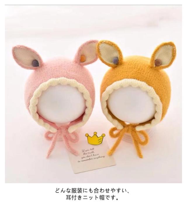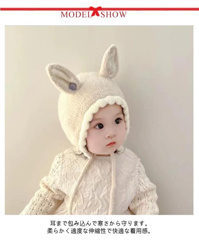 ベビー 赤ちゃん 男の子 冬 うさぎ耳 耳付き 新生児 秋冬 紐付き 秋 バンビ バンビ耳 うさぎ 帽子 うさぎ耳 スキー 女の子 可愛い 寒さ対策 お出かけ ベビー帽子 子ども こども 幼児 キッズ帽子 ニット帽 SNS 韓国 子供服