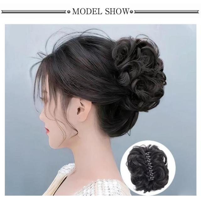 | シュシュウィッグ 2個セット 選べる2タイプ クりップとゴムの2タイプをご用意いたしました。 色んなシーンでコーディネートに取り入れたいお団子スタイル。 お団子にした自毛に巻くだけで簡単にこなれたゆるふわスタイルに出来ちゃいます! | |