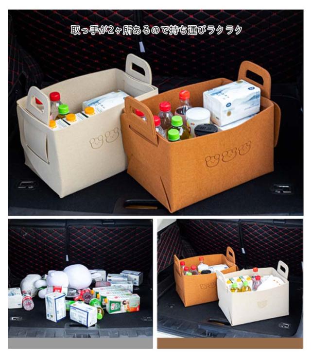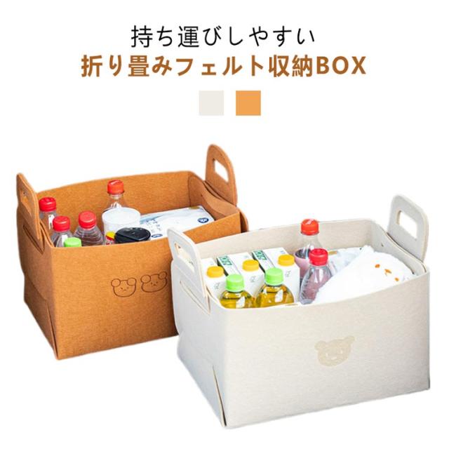 | ・持ち運びしやすい折り畳みフェルト収納BOX ・柔らかいフェルトで家具や床、収納物を傷つけにくくなっています。 ・取っ手が2ヶ所あるので持ち運びラクラク ・衣類、雑誌や小物収納に便利な収納ボックスです。 ・アイディア次第で使い方いろいろ♪ | |