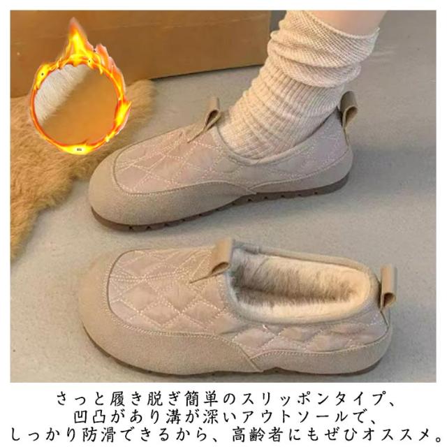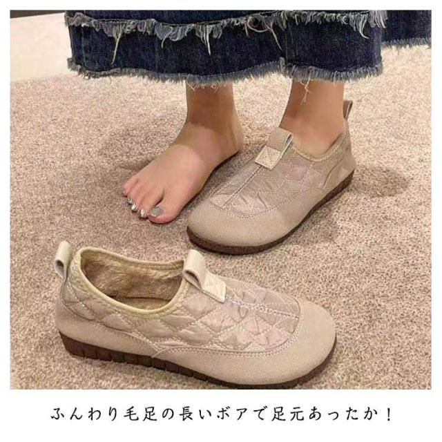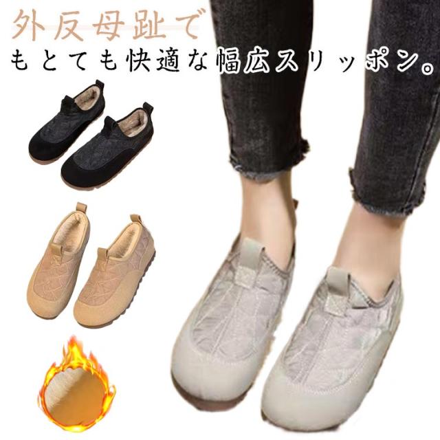婦人靴 スニーカー レディース スリッポン モカシン 裏起毛 外反母趾 シューズ 幅広 撥水 キルティングシューズ 裏起毛 もこもこ 裏起毛 暖かい カジュアルシューズ 靴 ぺたんこ ミセス 防滑 防寒 コンフォートシューズ
