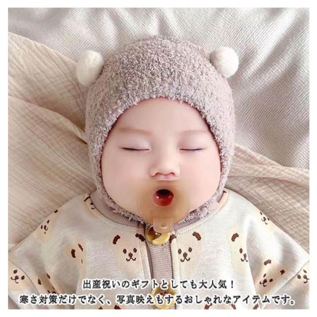 ベビー 耳付き ニット帽 ベビー帽子 帽子 子ども ボア帽子 新生児 赤ちゃん 赤ちゃん帽子 くま ふわふわ 暖かい 帽子 クマさん 冬 クマ ポンポン付き キッズ 子供 暖かい 可愛い 寒さ対策 クマさん ハロウィン クリスマス プレゼント ギフト