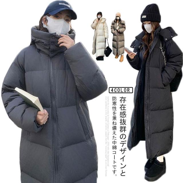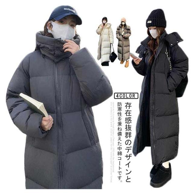 中綿コート アウター ロングコート レディース ベンチコート 秋冬 フード付き ジャンパー 厚手 膝下 あったか 軽量 無地 防寒 防風 大きいサイズ 暖かい 着痩せ 可愛い 韓国ファッション 通勤 通学 プレゼント