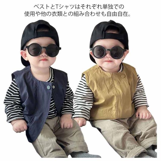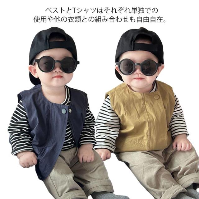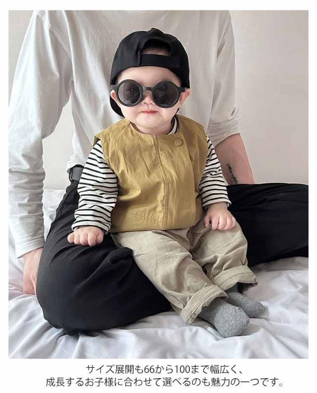 | ベストとTシャツはそれぞれ単独での使用や他の衣類との組み合わせも自由自在。 春から冬にかけての長いシーズンで活躍します。 サイズ展開も66から100まで幅広く、成長するお子様に合わせて選べるのも魅力の一つです。 カジュアルながらもおしゃれなこのセットアップは、日常のお出かけはもちろん、特別なイベントや写真撮影など、さまざまなシーンで大活躍。 お子様の記念日・出産祝い・ハロウィン・感謝祭・クリスマスなどにプレゼントにしても良い選択肢です。 | |