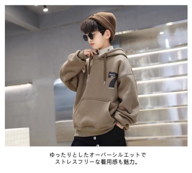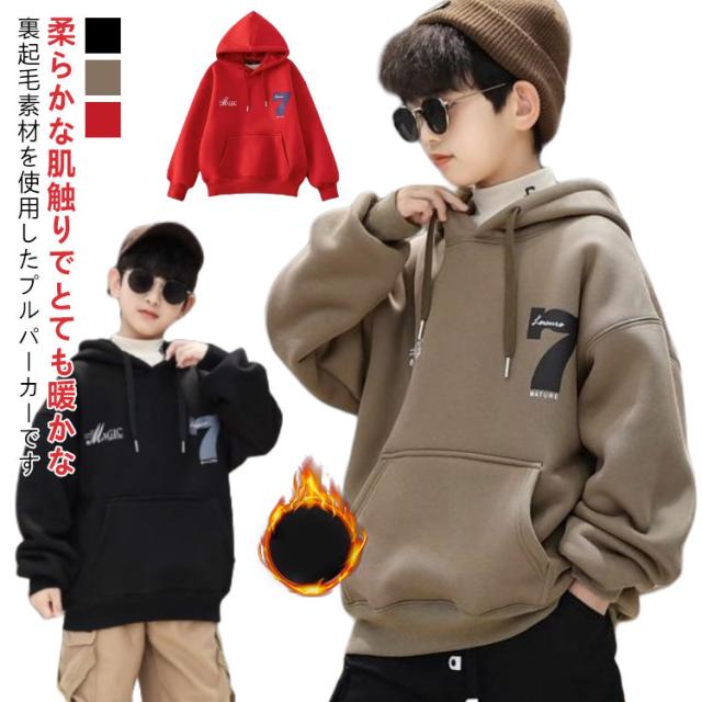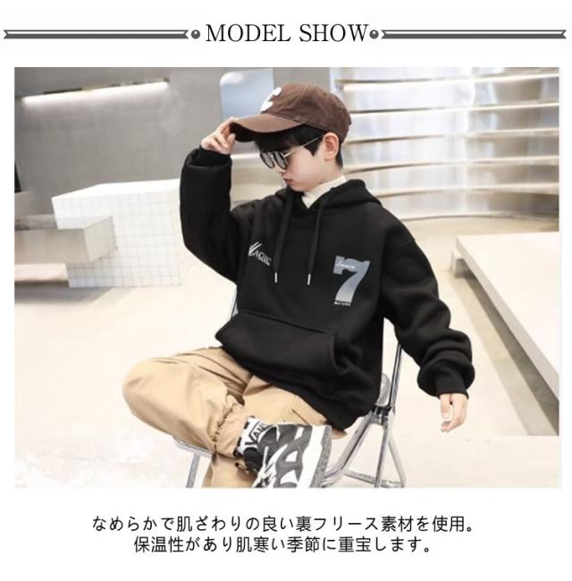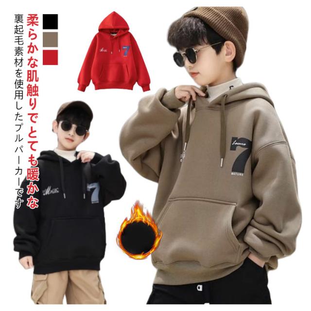 裏起毛 パーカー キッズ 男の子 プルオーバー スウェット プルパーカー 子供服 フード トップス ゆったり スエット あったか 暖かい 裏フリース ジュニア こども 子ども服 プリント おしゃれ 韓国子供服 秋冬 冬服 130 140 150 160 170 送料無料