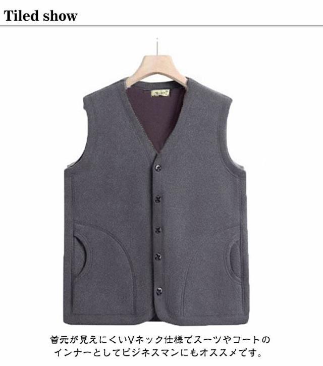 インナーベスト トップス 冬 フリースベスト 秋 防寒 前開き チョッキ Vネック フリース 裏起毛 保温 メンズ フリースベスト あったか 軽量 無地 薄手 袖なし 大きいサイズ あったか 裏起毛 作業着 紳士 部屋着 ルームウェア カジュアル 年寄り