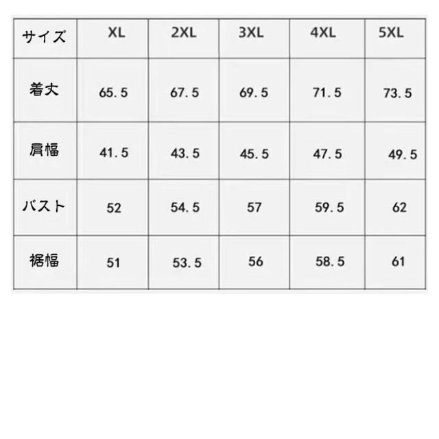| サイズ | XL 2XL 3XL 4XL 5XL |