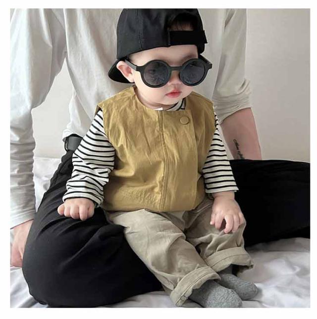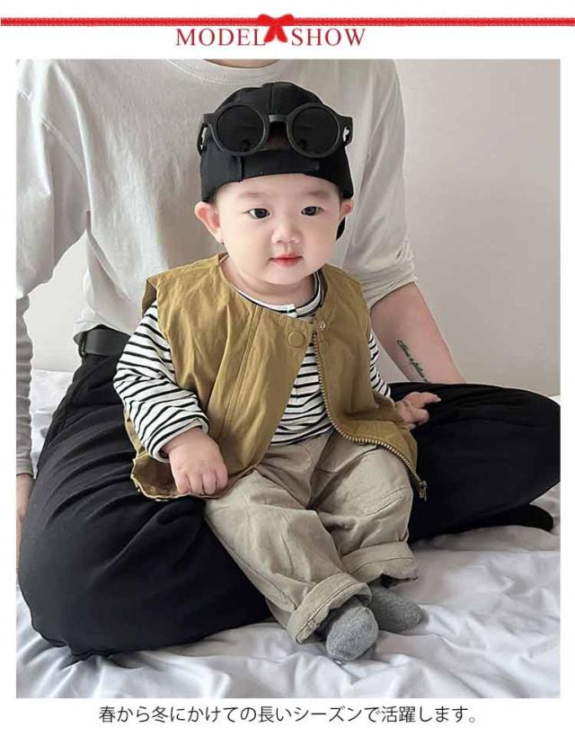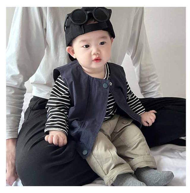 | ベストとTシャツはそれぞれ単独での使用や他の衣類との組み合わせも自由自在。 春から冬にかけての長いシーズンで活躍します。 サイズ展開も66から100まで幅広く、成長するお子様に合わせて選べるのも魅力の一つです。 カジュアルながらもおしゃれなこのセットアップは、日常のお出かけはもちろん、特別なイベントや写真撮影など、さまざまなシーンで大活躍。 お子様の記念日・出産祝い・ハロウィン・感謝祭・クリスマスなどにプレゼントにしても良い選択肢です。 | |