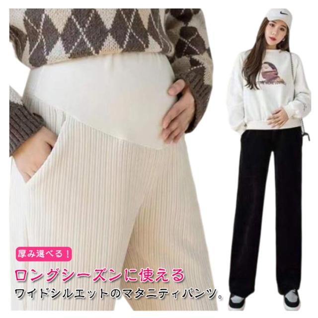 | 厚み選べる!ロングシーズンに使えるワイドシルエットのマタニティパンツ。 アジャスト機能付きで妊娠初期から産後までサポート! リブワイドパンツデザインが美脚&脚長シルエットで美しく魅せてくれます♪ お腹をすっぽり包み込み冷えから守る立体デザイン、裏起毛なので保温効果もUP! | |