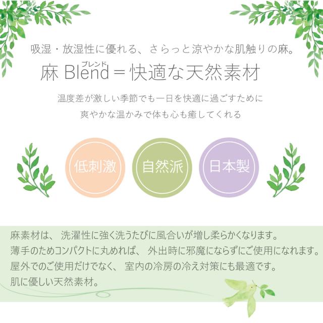 吸湿・放湿性に優れる、さらっと涼やかな肌触りの麻。温度差が激しい季節でも一日を快適に過ごすために爽やかな温かみで体も心も癒してくれる。