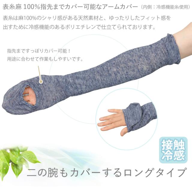 アームカバー 接触冷感 UVカット レディース ゆったり しめつけない ロング丈 指先付き 二の腕カバー 日本製 薄手 麻 天然素材 アーム カバー アームウォーマー 伸縮性 おしゃれ 手袋 腕カバー スポーツ 暑さ対策 麻Blend 砂山靴下 2024ss 2024aw outfit