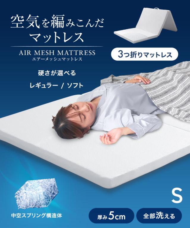 【空気を編みこんだ】 マットレス 三つ折り シングル 洗える マットレストッパー 厚さ5cm エアーメッシュ トッパー 折りたたみ 3D立体構造 通気性 高反発 敷布団 敷き布団 体圧分散 腰痛 マット 硬め 軽量 高反発マットレス メッシュマットレス 新生活 S