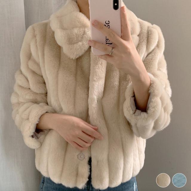 ゆったりとしたコクーンシルエットがかわいいファーコート。