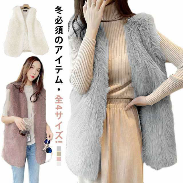 フェイクファー ベスト ジレ レディース アウター ファーコート ファージャケット ノースリーブ コーディガン 秋冬 羽織