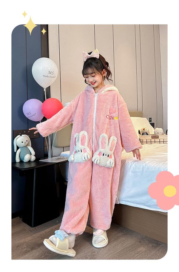キッズパジャマ オールインワン うさ耳付き 長袖 ルームウェア フード付き 女の子 子供服 キッズ フランネル パジャマ 女の子 部屋着 もこもこ あったか ふわふわ 優しい肌触り厚手 保温 防寒 可愛い 暖か 秋冬 dh009m3m3m5