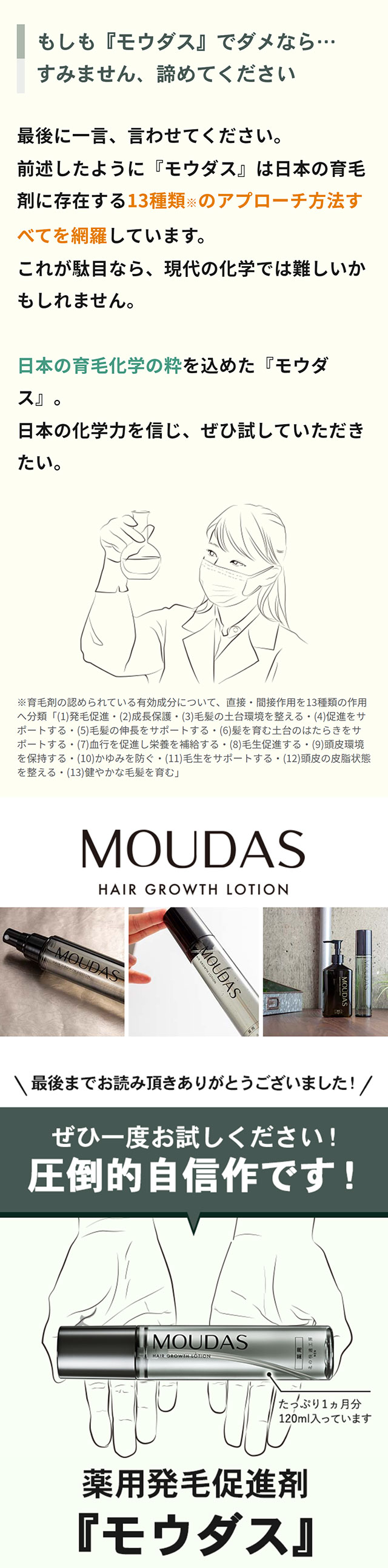 育毛剤 『モウダス 薬用 発毛促進剤』 北の快適工房 13種類の化学的アプローチを網羅した育毛剤ニューモデル 【リデンシル 3%】配合 送料無料 メンズ これでダメなら諦めがつく