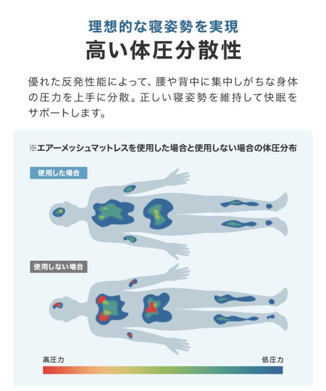 厚さ5cmのエアーメッシュの高い反発性で寝返りをサポート!