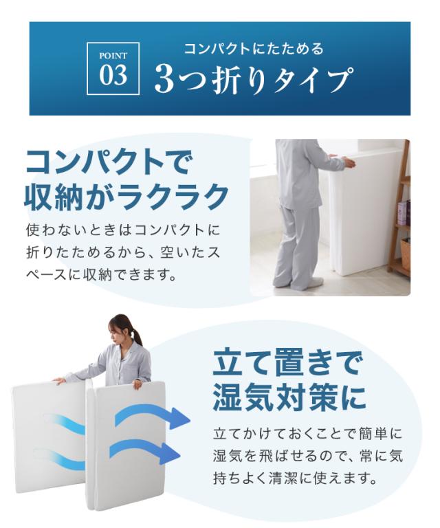 三つ折りマットレス は、サッと コンパクト に折りたためるので、 押入れなど、省スペースに収納しやすく、持ち運び にも便利!
