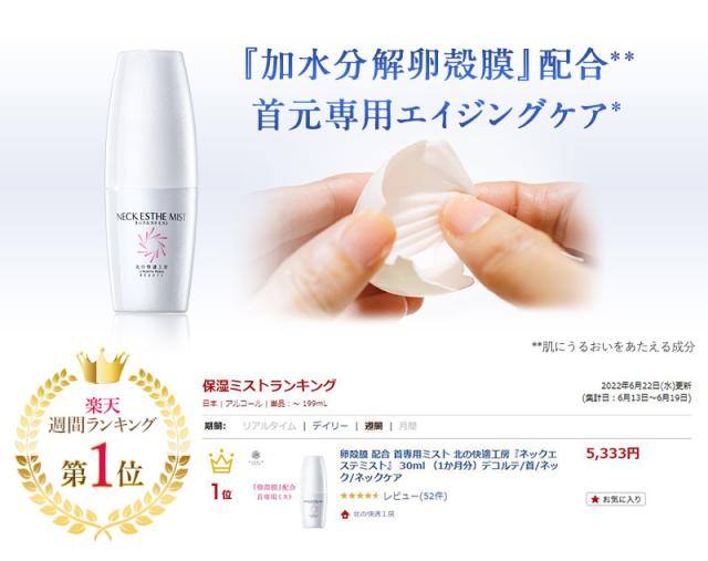 首 専用美容液ミスト 北の快適工房『ネックエステミスト』公式 加水分解 卵殻膜、羅臼の海洋深層水、3Dヒアルロン酸を配合 デコルテ/ネック/ネックケア/ネッククリーム 送料無料