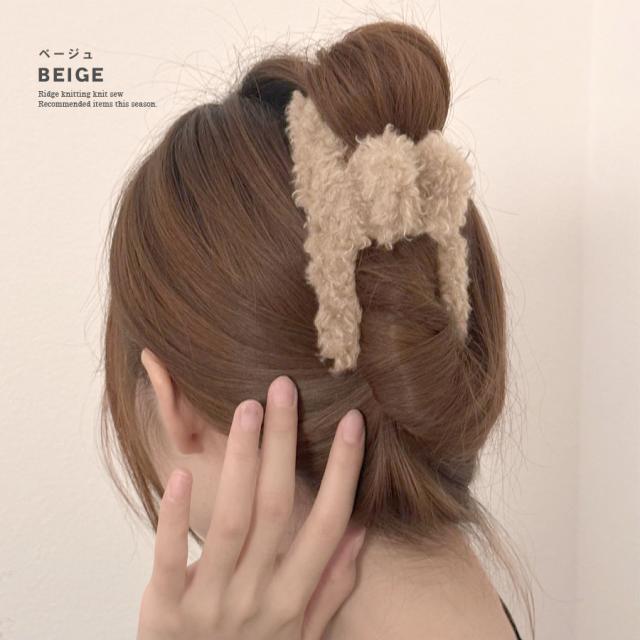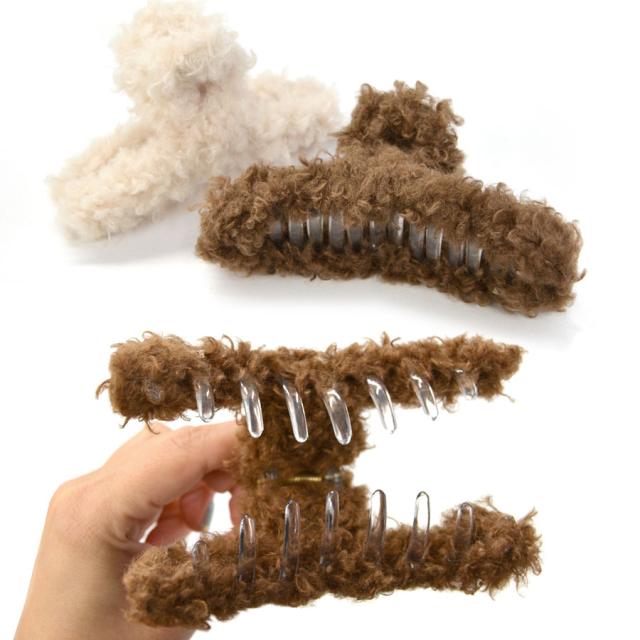 ボア もこもこ バンスクリップ ヘアクリップ プードルボア レディース ヘアアクセサリー ボリューム くるりん まとめ髪 髪留め 髪飾り 秋冬 可愛い お洒落 大人 シンプル 大きめ ふわふわ 送料無料 (hac319)