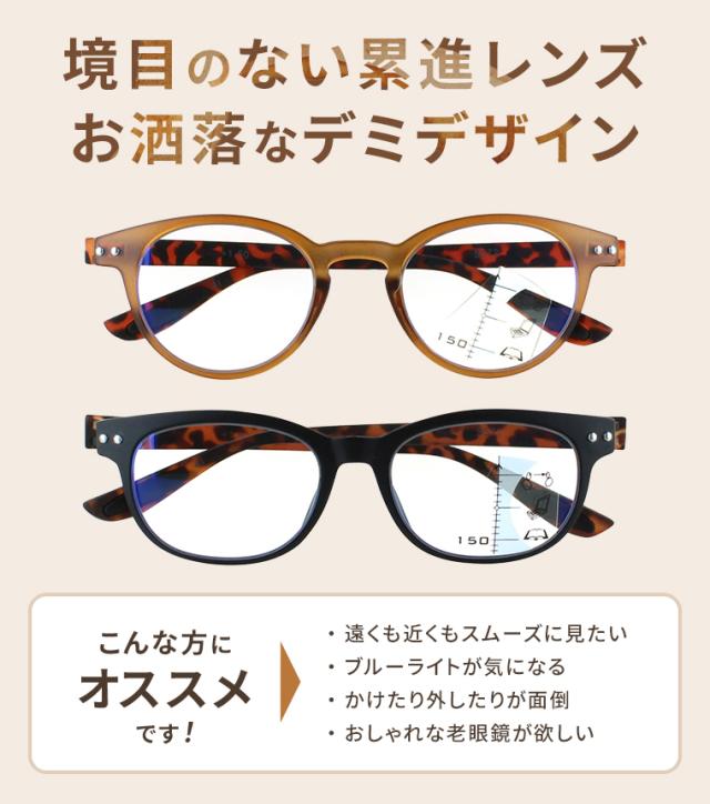 遠近両用 メガネ 眼鏡 老眼鏡 レディース メンズ おしゃれ ブルーライトカット カカル遠近 境目のない累進レンズ リーディンググラス シニアグラス 軽量 男性 女性 5571 ウェリントン ブラック デミ 5572 ボストン ブラウン デミ 1.5 2.0 2.5 3.0 40代 50代 60代