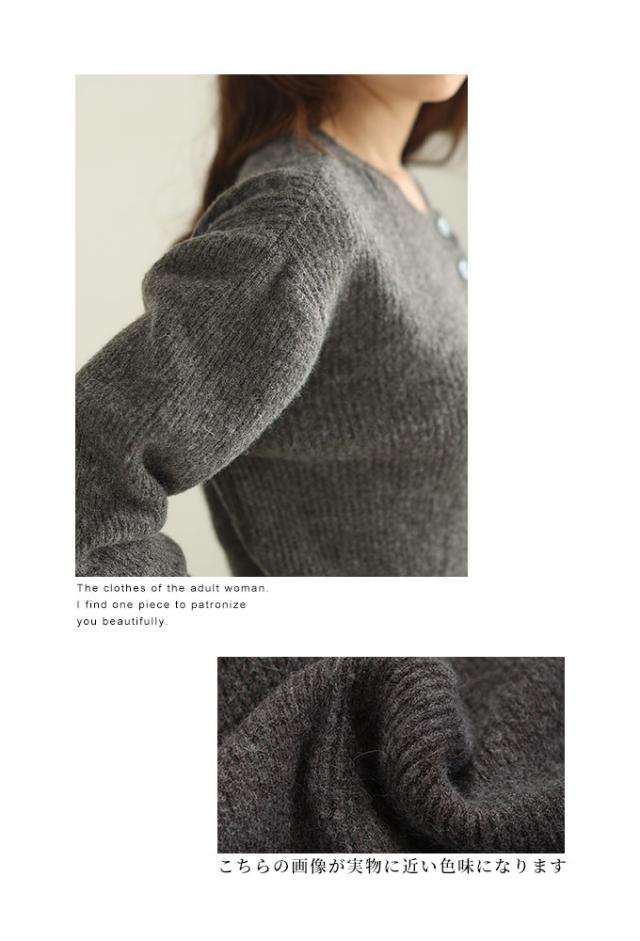 トップス着丈はウエスト下9センチ、袖は手の甲が半分隠れるくらいでした。フロントボタンの一番下はおへそから5センチ上で、そこから開いたデザインです。袖口は長めのリブなので手首がほっそり見えます。身頃・袖は程よくゆとりがありました。スカート丈は足首丈、ウエストは総ゴム入りで楽でした。広がりを抑えたAラインシルエットです。上下とも起毛感のある温かみのあるニットで、チクチク感はありませんでした。